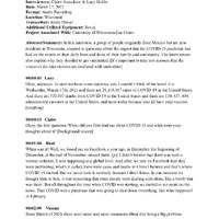 En esta entrevista un grupo de personas, originarios de México residentes en Wisconsin, responde preguntas acerca del impacto que la pandemia de Covid-19 ha tenido en el acontecer de su vida cotidiana, la de sus familias, y su comunidad. Los entrevistados también explican por qué decidieron vacunarse. [Es importante tener en cuenta que las voces de los entrevistados se confunden entre sí]